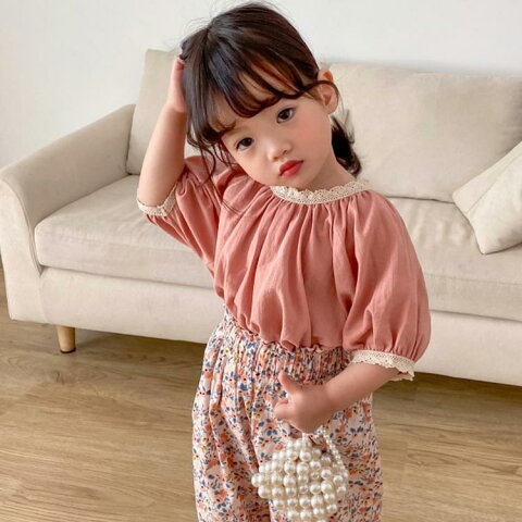 ブラウス ベビー Tシャツ 女の子 半袖tシャツ キッズ トップス 送料無料 ゆったり 半袖ブラウス 韓国子供服 ガールズ ラグランスリーブ キャザー 綿麻混 無地 コットン レース リネン 可愛い おしゃれ 夏
