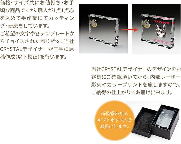 ペット 位牌 クリスタル 時計 カットスクエアクロック Sサイズ ( H100×W60mm ) メモリアル 仏具 遺影 供養 四十九日 ガラス 記念品 ギフト プレゼント オリジナル オーダーメイド 写真入り 画像入れ 名入れ 文字入れ [ YTR005 ]