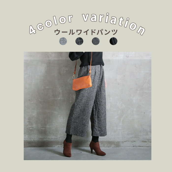 【24h限店内全品P5倍!】即納 ウール混 ワイドパンツ ウールパンツ ハイウエスト 美シルエット ウエスト後ろゴム ガウチョ パンツ ボトムス 秋 大人 レディース オフィス 美脚 チェック柄 黒 無地 ウエストゴム ゆったり おしゃれ きれいめ 暖か