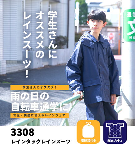 自転車通学の方は雨が降ってしまうと傘差し運転は出来ないので、レインウエアは必須アイテムですよね。