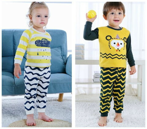可愛いイラスト入りの子供用のパジャマ上下セットです。