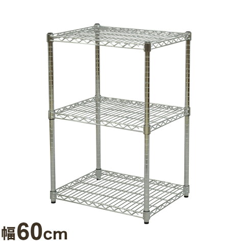 スチールラック 3段 幅60 奥行き45 高さ90 シェルフ ワイヤー オープンラック キャスター付き コンパクト リビング スリム ポール径25mm 防サビ 収納(代引不可)【送料無料】