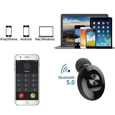 即納 ワイヤレスイヤホン Bluetooth5.0 片耳型 ワイヤレス ハンズフリー通話 IPX68防水 ブラック iPhone android 対応 日本未発売