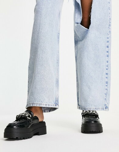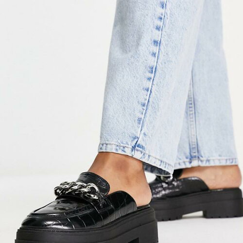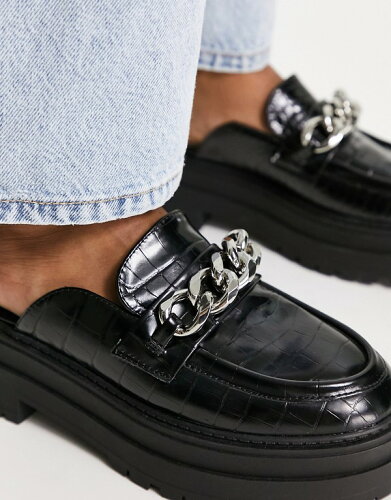 エイソス ASOS asos ASOSDESIGNマーシャルチャンキーチェーンフラットミュールブラッククロックス 靴 レディース 女性 インポートブランド 小さいサイズから大きいサイズまで