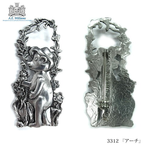 素材 ピューター(錫)製 サイズ 【フラワー】 縦幅 約3.8cm×横幅 約3.4cm×厚み 約0.1cm 【アーチ】 縦幅 約4.8cm×横幅 約2.1cm×厚み 約0.1cm 【フルーツ】 縦幅 約5.0cm×横幅 約2.2cm×厚み 約0.1cm デザイン 英国製(イギリス製)A.E.Williams社 備考 英国A.E.Williams社の製作するピューター製『テディ・ブローチ』です。