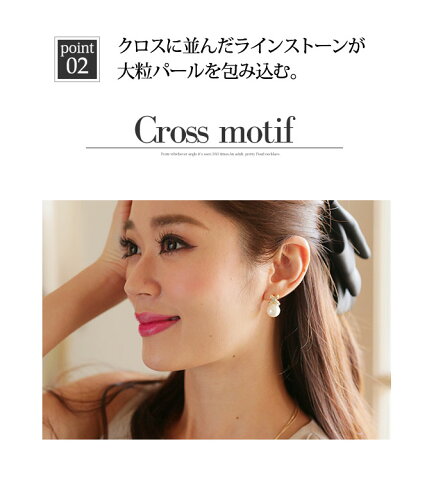 [サイズ] クロスモチーフ:約1.0cm パールサイズ:約1.3cm [タイプ] A.ゴールド・ピアス B.シルバー・ピアス C.ゴールド系・イヤリング D.シルバー系・イヤリング [ディティール] クロスモチーフ・・・クロスに並んだラインストーンのデザインです。
