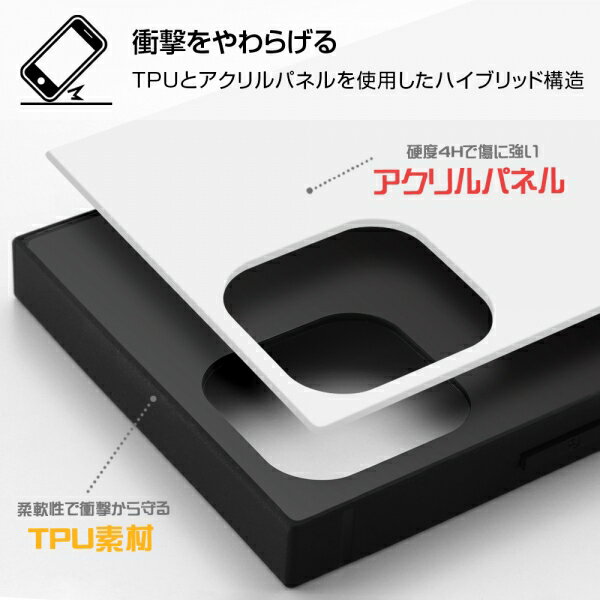 個性的な四角いフォルムと、衝撃に強いTPU素材の側面、薄くて軽いアクリルパネルを背面にセットしたiPhone12/12Pro用耐衝撃ケースKAKUハイブリッド。