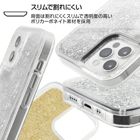 iPhone 12・12 Pro 国内メーカー品 キラキララメが流れるグリッターケース 背面はPC、側面は衝撃に強いTPUのハイブリッドケース キラキラグリッターがデザインをかわいく演出します ウッディ ドコモdocomo au ソフトバンク