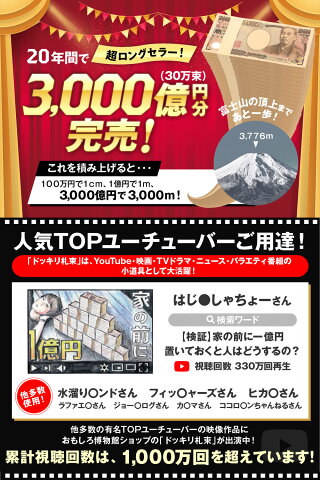 使用例 ・ドッキリとして家の机に置いておく ・子どもや孫にお年玉、お小遣いとして渡してみてびっくりした顔を見る ・SNS(インスタ、フェイスブック、ツイッター等)でお友達に自慢してみたりする ・ギャンブル(パチンコ、スロット、競馬等)をする前にお祈りしてみる ・宝くじと一緒に置いたりお財布に入れて金運アップ ・お金を数える練習 (画像、説明文の引用、転載は禁じます。