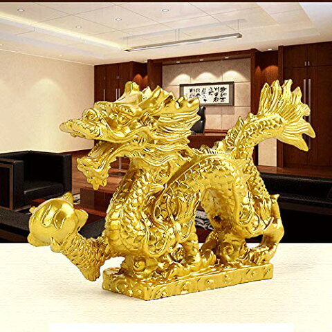 龍の置物 風水 置物 5本爪 龍 ドラゴン インテリア リビング 玄関 オブジェ 置き物 横向き 金運アップ 祈願 運気アップ (金色, 12x2.