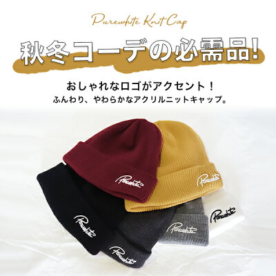 【ニット帽 レディース】 ショートワッチ メール便送料無料 冬用 大きめ おしゃれ ロゴ 刺繍 秋 冬 帽子 秋冬 浅め 防寒 寒さ ママ パパ お揃い かっこいい ビーニー 誕生日 プレゼント シンプル 女性 男性 メンズ【Purewhite Knit Cap】