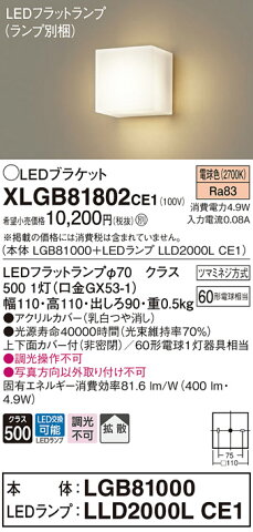 【最安値挑戦中!最大25倍】パナソニック XLGB81802CE1 ブラケット 壁直付型 LED (電球色) 拡散タイプ 調光タイプ 白熱電球60形1灯器具相当 乳白