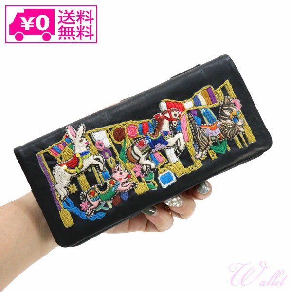送料無料 Merry-go-round Black 長財布 WA3101 ハナカラクサ 刺繍 財布 レディース