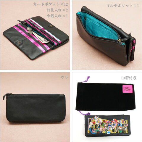 プリントの上を塗り絵のように刺繍する技法で作られたユニークな長財布です。